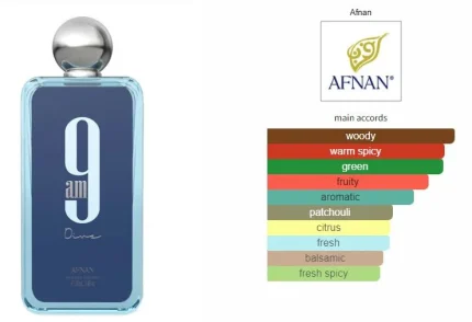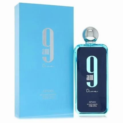 Launch year: 2022. Fragrance Family: Aromatic Aquatic. Top notes: Mint, Lemon, Pink pepper, Black currant. Heart notes: Apple, Incense, Cedar. Base notes: Patchouli, Ginger, Sandalwood, Jasmine. Design house: Afnan. Design house category: middle eastern fragrance. Design house country: United Arab Emirates. Scent name: 9 Am Dive. Gender: Unisex. Afnan Unisex 9 Am Dive EDP Spray 3.4 oz Fragrances