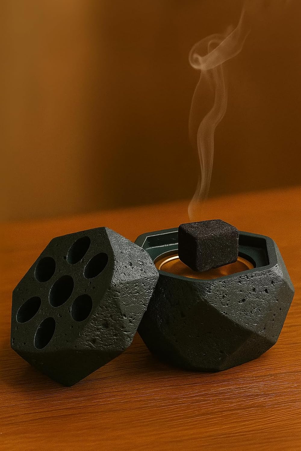 - Stylish Bakhoor Burner Included – A modern geometric burner designed for efficient and safe burning, maximizing fragrance diffusion.