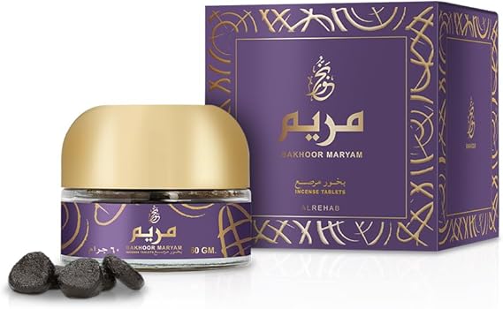 Alrehab Bakhoor Maryam Incense is meticulously crafted from the finest types of oudh. Its oriental aromatic blend combines amber and luxurious musk, expressing a sense of opulence and pride among incense enthusiasts. This exquisite blend offers an authentic and captivating scent that is sure to delight the senses. It comes in 60 g.