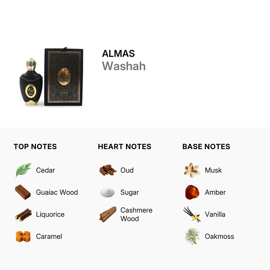 Experience the captivating charm of Washah by Almas, a luxurious ladies’ fragrance crafted with elegance and depth. Hailing from the heart of Saudi Arabia, this 3.4 oz Eau de Parfum Spray is a unique creation from the renowned Middle Eastern design house, Almas, known for blending tradition with modern sophistication.